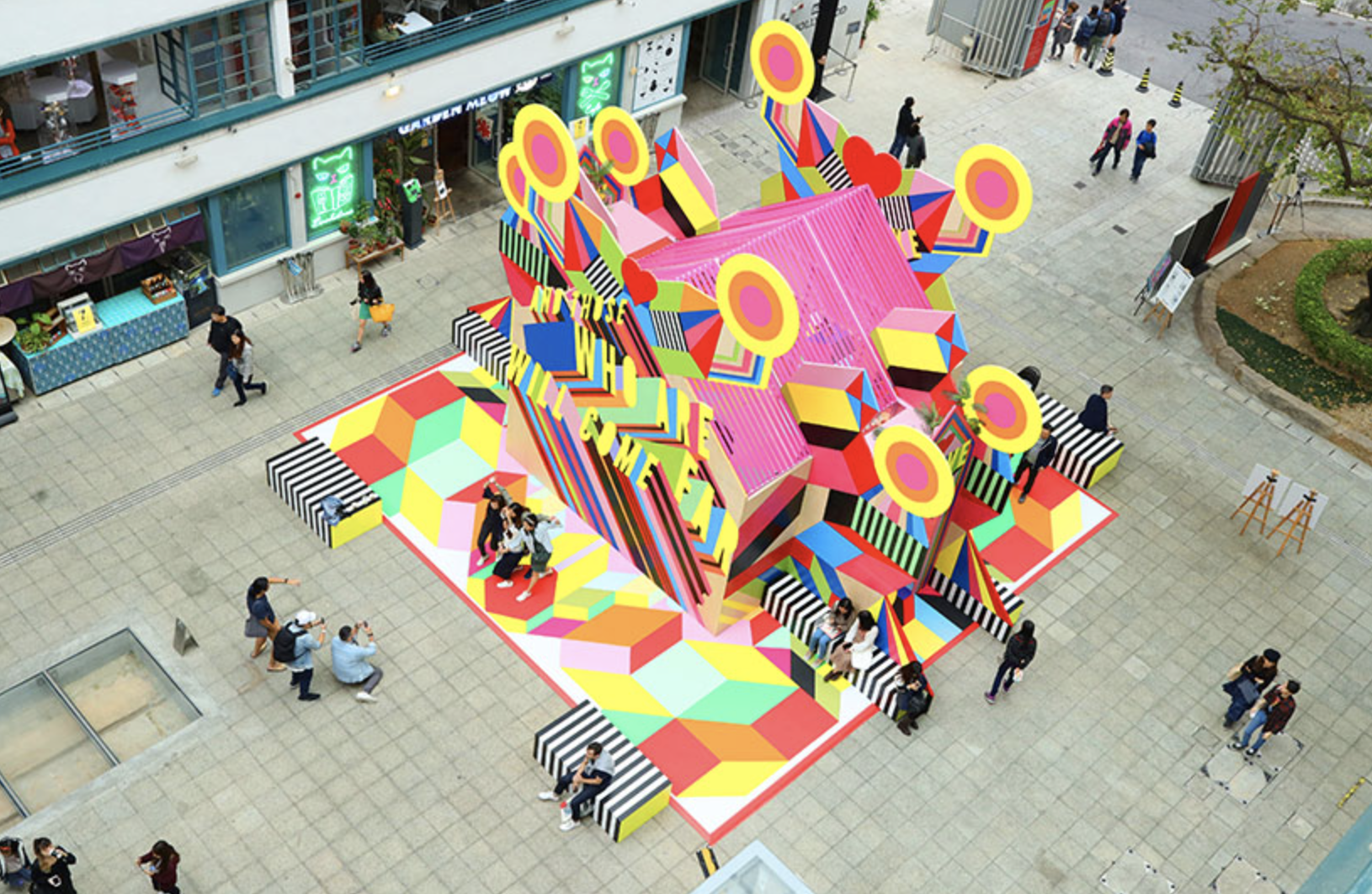 The exterior of the installation will combine dozens of West’s colorful floral photos to create a surreal, beautiful landscape of a daisy field. This vibrant structure will add to the peaceful, serene atmosphere of Daisy Fields while providing an easy landmark that visitors can find their friends at.