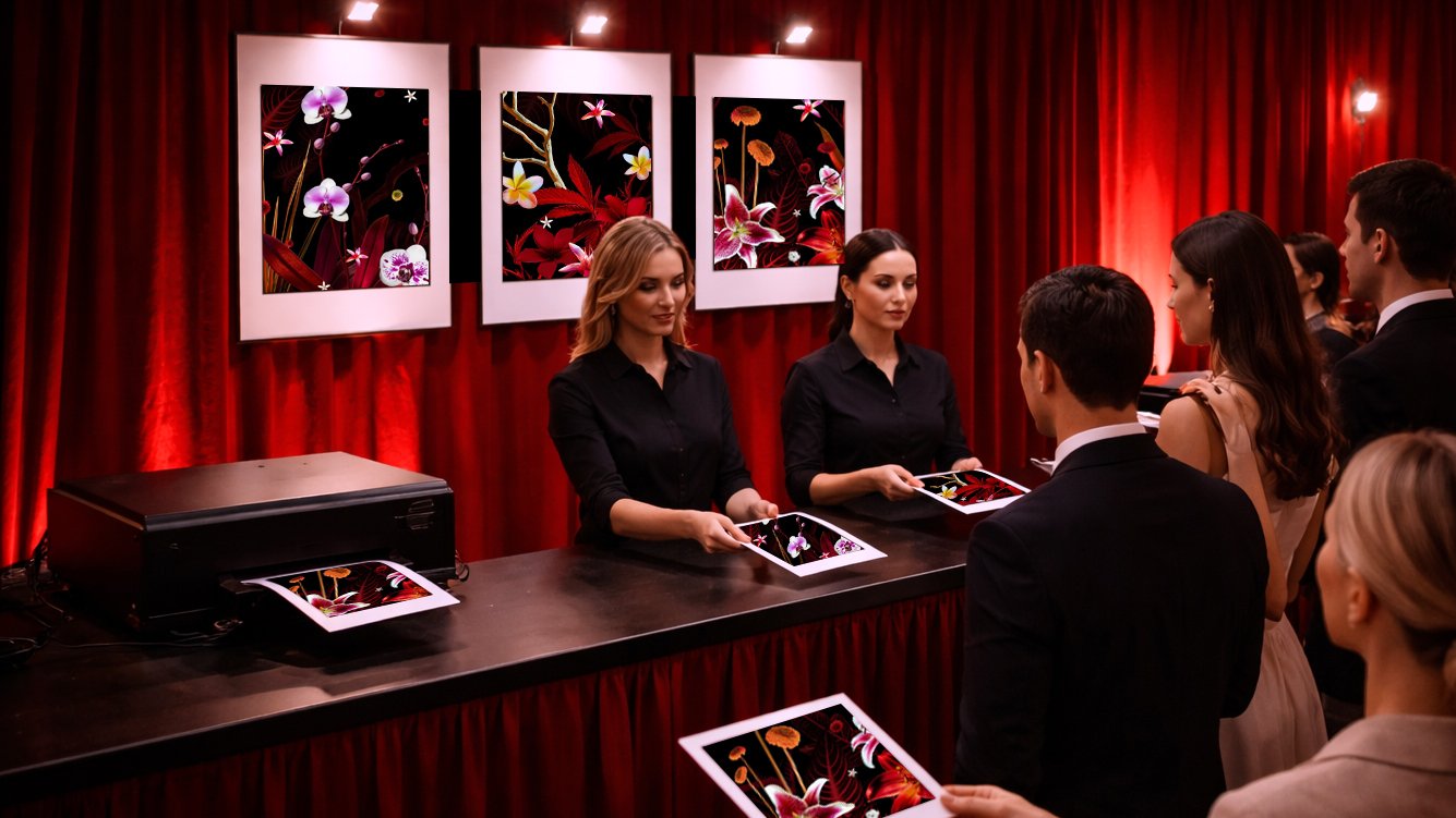 Each print serves as both a meaningful souvenir from the event and a tangible extension of the exhibition itself. It also offers a compelling demonstration of the color accuracy, richness, and detail achieved through Canon printing technology. The deep reds, luminous magentas, and subtle tonal variations present in the work are preserved with precision, allowing guests to take home a high quality piece that reflects the same visual impact experienced within the installation.